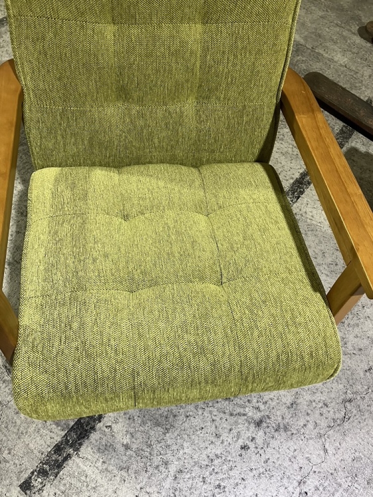 座面:ウェービングベルト/ウレタンフォーム(グリーン) 背面:ウレタンフォーム フレーム:天然木 脚部:天然木(ラバーウッド)