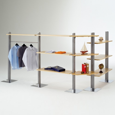 DA-008 ポール(グレー石目) x 5本 DA-015A 棚板(タモクリヤー) x 7枚 DA-018 コーナー棚板(タモクリヤー) x 3枚 DA-022 ハンガーバー x 1本 DA-029 棚板(センター用) x 14個 DA-031 棚受(コーナー用) x 6個