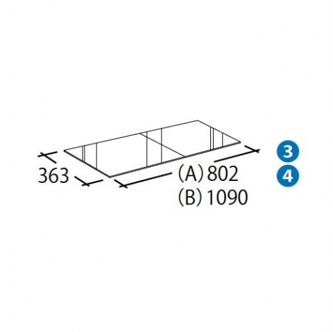 ③DA-077 ガラス棚 (A)W900用 (B)W1200用 ④DA-078 アクリル棚 (A)W900用 (B)W1200用