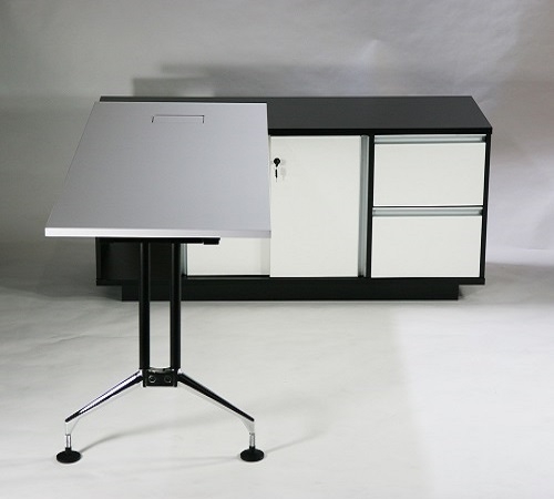 天板・サイドキャビネット:メラミン 脚:アルミニウム(クロームメッキ)、スチール