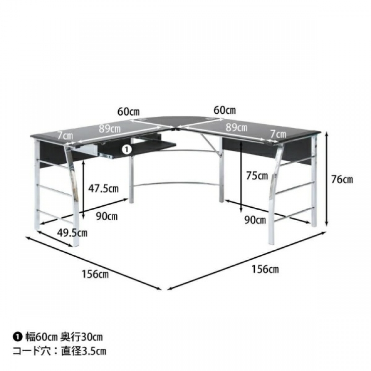 L型PCデスク(ホワイト)