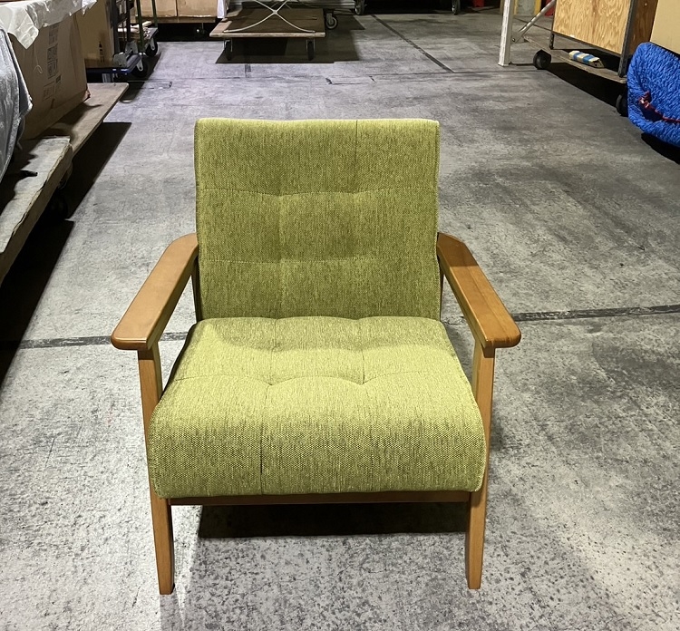 座面:ウェービングベルト/ウレタンフォーム(グリーン) 背面:ウレタンフォーム フレーム:天然木 脚部:天然木(ラバーウッド)