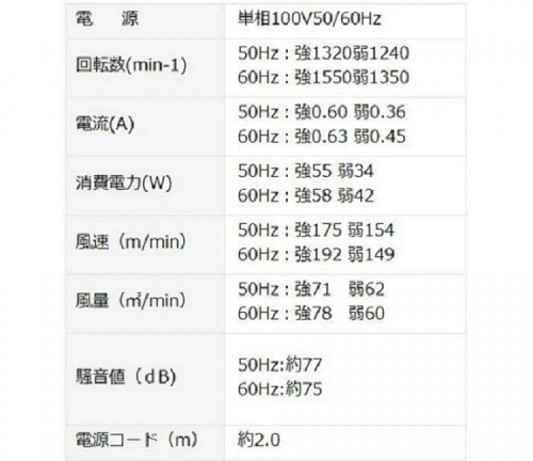 消費電力:(強)55/58W (弱)34/42W
